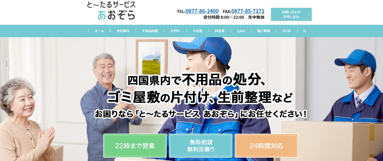 遺品の整理・買取りとハウスクリーニングをお願いしました。買取は思っていた以上に買い取ってくださり、価格も付いたので最終金額がすごく安くなりました。ハウスクリーニングで原状回復してもらったので、今後空き家としてすぐに売りに出せるので助かります。2日間におよぶ長い作業でしたが、細々したところまでしっかりきれいにしていただき本当にありがとうございました。(50代・男性・高松市在住)