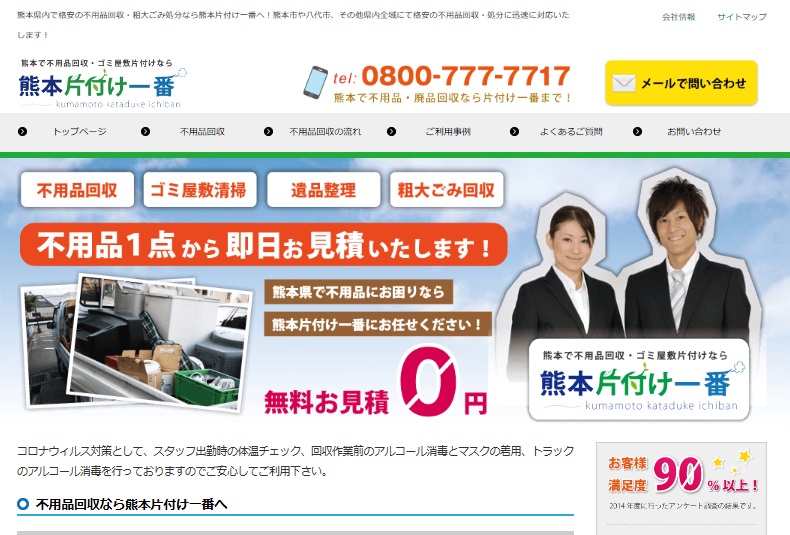 作業も2日で終わり、貴重品などの確認を行ってくれるなど信頼できる行動などで、最後まで安心してお任せすることができました。