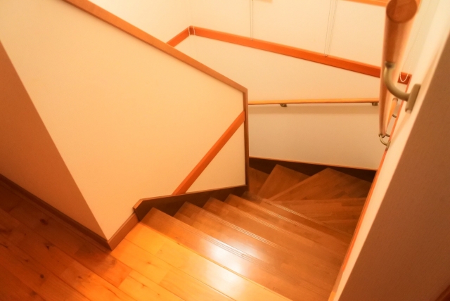 かね折れ階段は、L字に曲がっている階段で、曲がるところに踊り場があります。踊り場があることによって、バランスを崩した時に一気に下まで転がり落ちてしまうことを防いでくれます。また、直角に曲がっているので壁との相性も良く、コンパクトにおさめることができます。